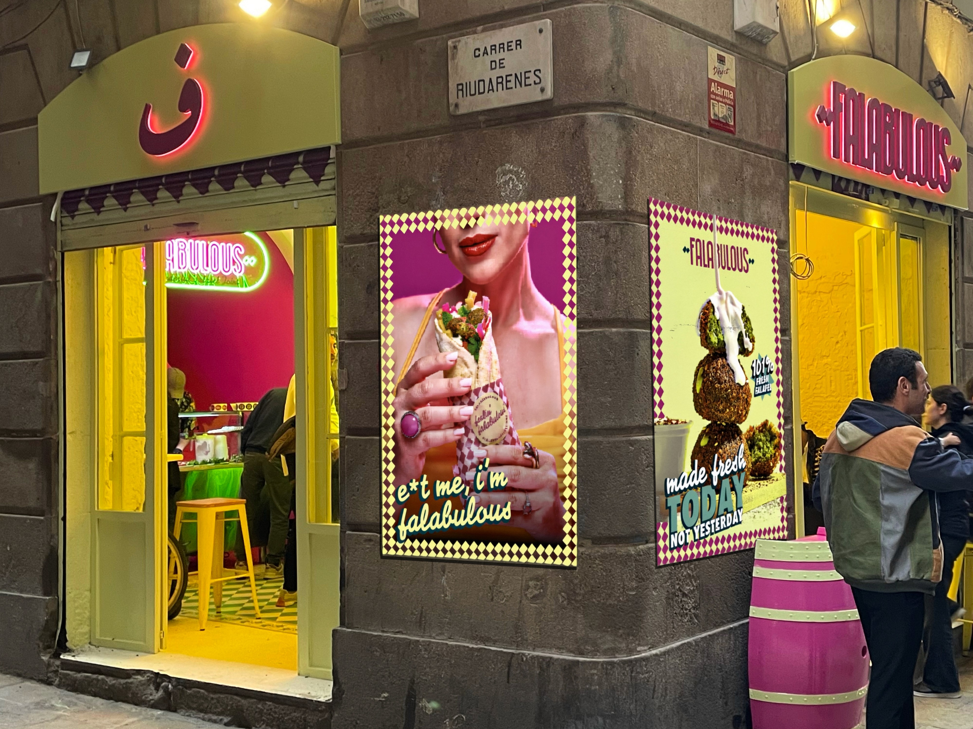 Falabulous set out to reimagine what a falafel joint could be, transforming it into a stylish spot that reflected the eclectic energy of Barcelona. The brand needed an identity that would resonate with a young, urban audience and stand apart in a crowded food market.
